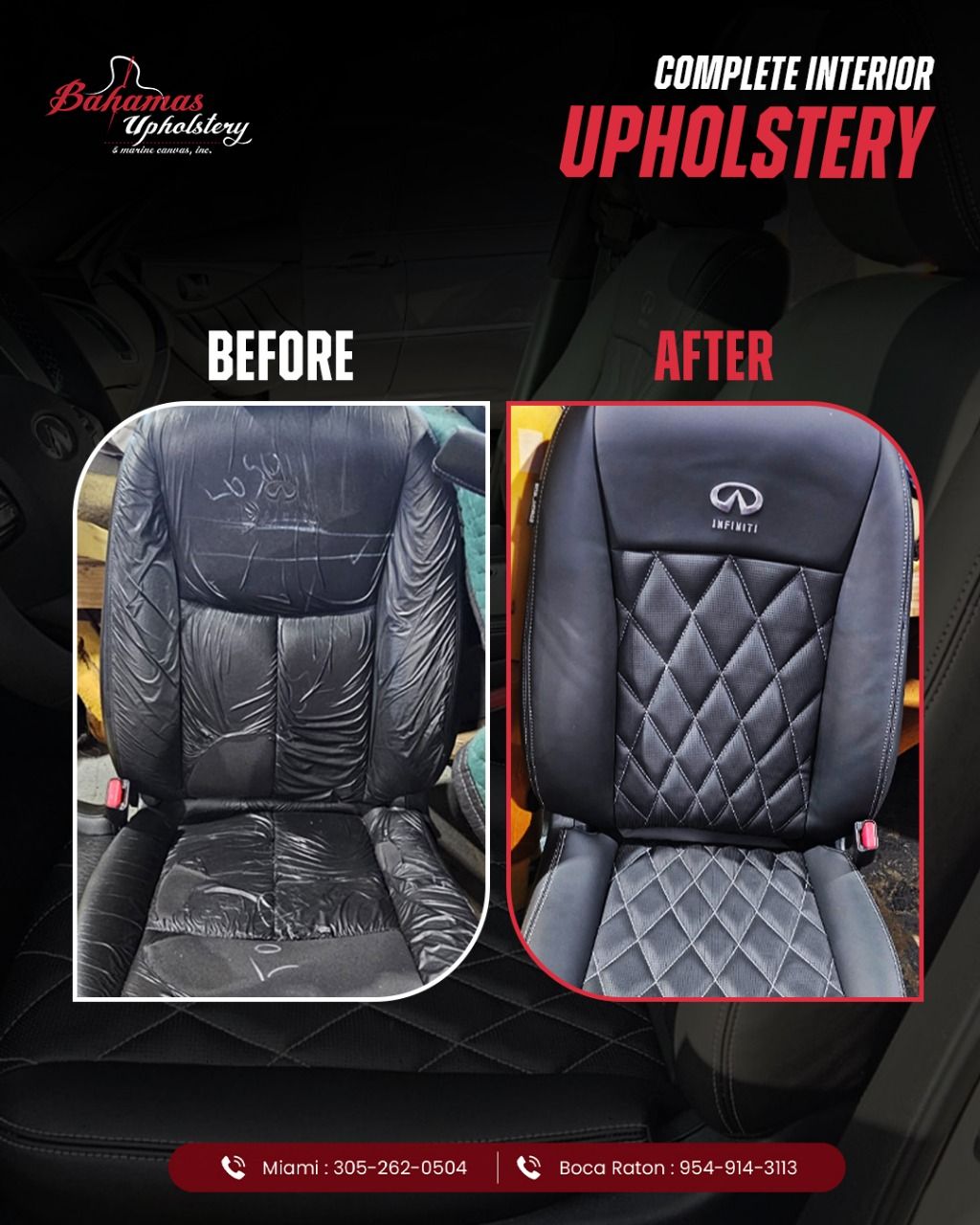 Bahamas Upholstery Miami has exceeded our clients’ expectations for over 40 years! We are proud to mention that we have serviced, repaired, restored and re-upholstered all types and models of cars, from simple rips, scratches, or burns, to full and customized upholstery work and refinishing that sets new industry standards in quality, technology, comfort and style. We are skilled and experienced workers completely dedicated to customer satisfaction, personalized service, attention to detail, and upholstery work that will add value and life to your car!